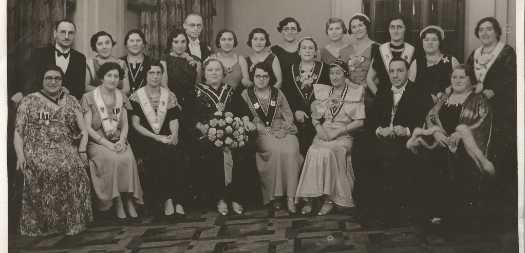 The gathering is to celebrate some event in the calendar of the Princess of Wales Lodge No 25 (Ladies) affiliated to the order of Achei Brith (Brothers of the Covenant) and Shield of Abraham, a mutual self-help alliance of friendly societies which acted as a safety net in times of sickness before the establishment of the Welfare State. So, who are the women behind the smiles?