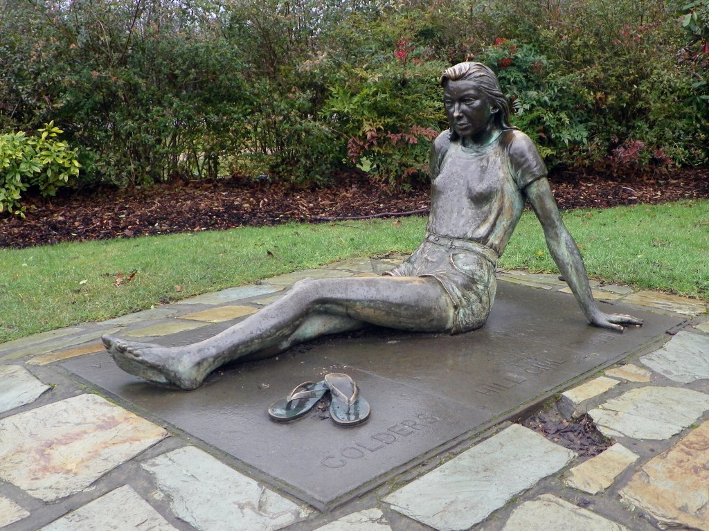 You know me but you don’t know my name. It’s Beth. And I’ve been lounging in the same spot for 35 years now. I had a mummy once, her name was Patricia Finch, so you could say that my name is Beth Finch. Patricia died in 2001 ten years after creating me. I know she loved me because she didn’t want me mouldering in some museum. That’s why she donated me to the park where everyone can admire me. That sounds like I’m a show off, but I’m not really. And you can’t accuse me of posing. I’m just a girl sunbathing, even though all seasons are the same to me. So, if you’re considering wrapping a scarf around my neck and shoulders when it gets chilly, thank you, but it’s not necessary. The gear definitely suits me don’t you think? Wait! You, yes you, gawping at my breasts beneath my t-shirt. Please stop. Patricia never intended me to be a pin-up, just a regular girl with a regular body. All the same, I’m very proud of my legs: strong legs on a strong girl. Don’t worry about me having to support myself with my arms planted either side of my bod: pins and needles are not an issue for statues. And if I’m not exactly smiling, that could be because I do a lot of thinking. Thoughtful of Patricia to provide me with a pair of flip flops, but I’ll never slip them on ‘cos I’m not going anywhere, am I? By the way: the upside of being a statue is that you never age. Children who were first brought to see me when they were babes in arms, are all grown now with sprogs of their own. Come and visit me any time you’re in the area; I might even manage a wink of an eye if no one else is looking. But please, no gawpers.